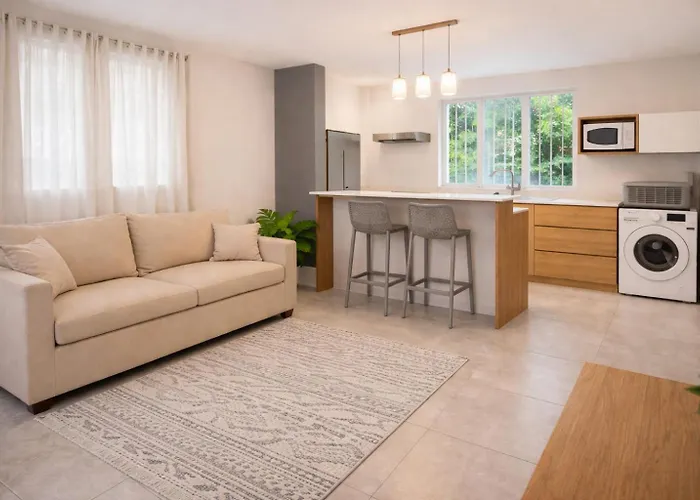 Diese Apartments bietet einen Wohnbereich, einen Patio und einen Balkon und Annehmlichkeiten wie eine Klimaanlage. Das Apartment The Beach Life Pereybere bietet außerdem 1 Bad. Ein Haartrockner und Handtücher sind ebenfalls vorhanden.